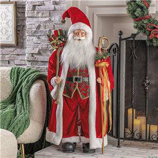 36 1/2" Santa Figure with Bag of Presents & Staff Christmas Decoration