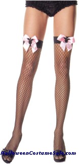 Thigh High Fishnets Black with Pink Bow