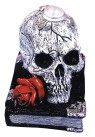 CANDLE HOLDER, SCARY SKULL W/BOOK